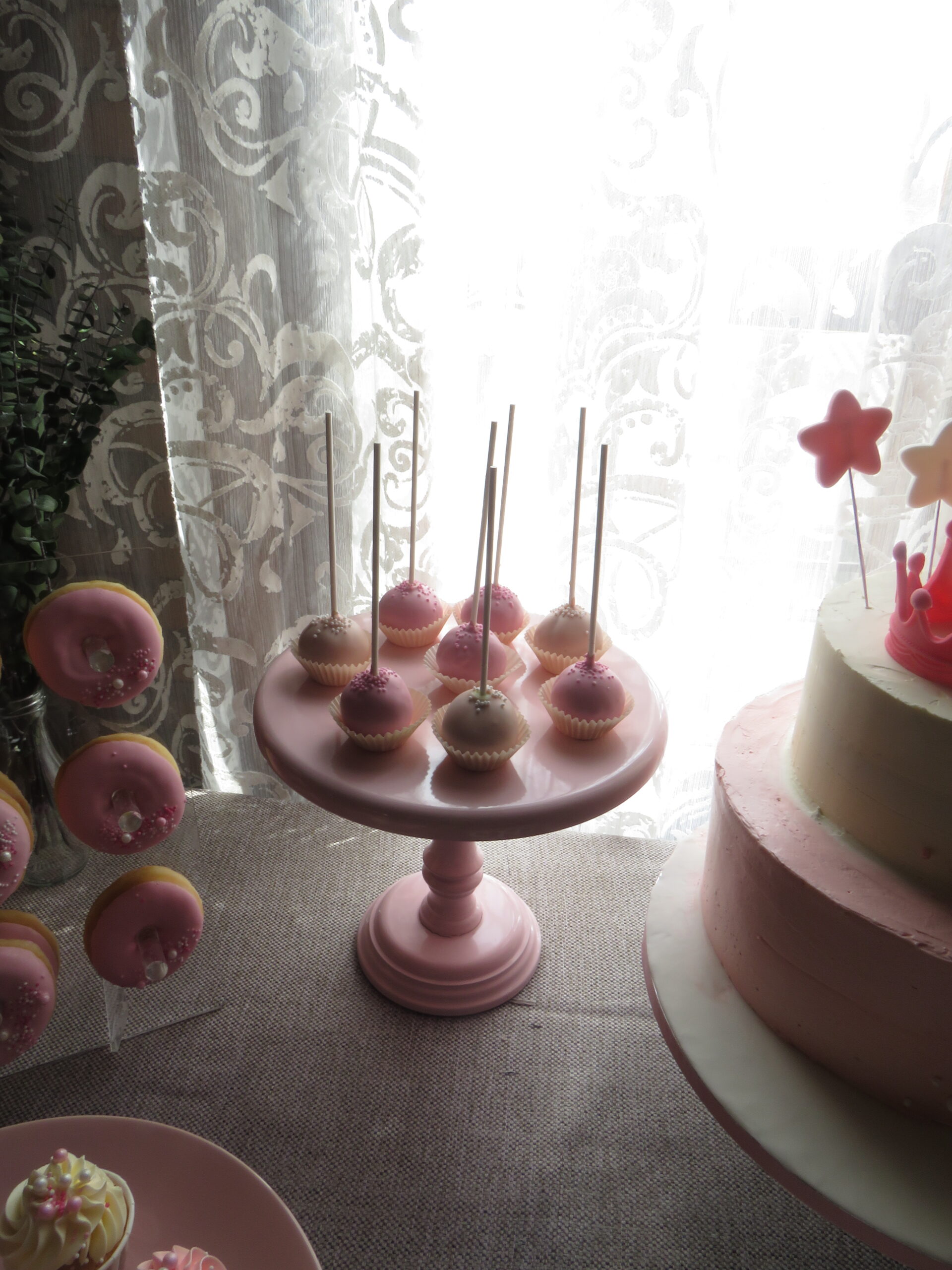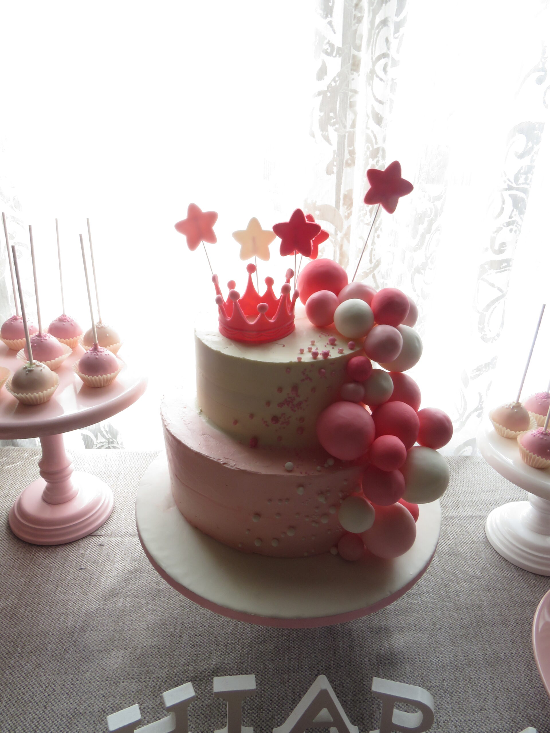 Una mesa para una princesa En tonos rosas y con una corona sobre la tarta.