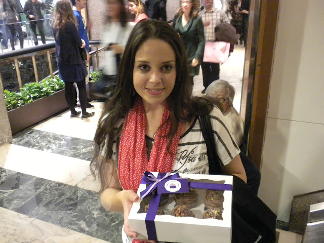 El primero fue ya hace un par de años, en mi época handmade-craft, a través del blog de Holamama, me tocaron unas pegatinas de Fun Choices para etiquetar los regalos navideños. Después vinieron unas cupcakes de la tienda Happy Days, que casi pierdo porque tardé unas horas en darme cuenta que era la premiada..... y la gente estaba como loca en el perfil de facebook de Happy Days pidiendo un re-sorteo. De este no hay foto me las comí antes, recuerdo que elegí red velvet y chocolate.